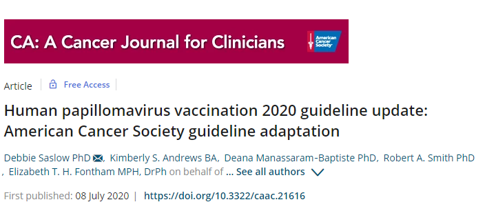 《CA》是目前全世界范围内影响因子最高的期刊(没有之一),可以理解为权威中的权威。可以说,每一篇《CA》上面刊登的文章都有着相当的含金量。在7月8日,在《CA》杂志上就刊登了一篇新的文章:关于HPV疫苗接种指南的更新。HPV病毒和多种肿瘤的发生有关,包括:子宫颈癌、口咽癌、肛门癌等等,在2012年~2016年之间,美国每年大约有34800例癌症患者病因可归因到HPV感染。 但是幸运的是,HPV疫苗的诞生让我们有望改写这些进程,话不多说,就让我们一起来看看指南最新的结论吧。 文章封面(图片来源:《CA》官网) 在最新的指南中,建议人们在11~12岁的时候接种HPV疫苗,当然这一年龄可以提前到9岁。根据相关的研究数据显示:9~12岁接种疫苗可以达到更高的及时接种率,年龄越往前,接种的保护效果就会越好。同时疫苗的保护作用并不会随着年龄的增加而出现衰弱的情况,因此早期疫苗的接种可以为青春期和早期的成年生活提供充足的保护。 从最新的指南更新来看,建议所有26岁以下的人群接种HPV疫苗——当然也是越早接种疫苗越好。对于26岁以上的人群来说,目前来说是尊重个人的选择,和26岁以下的人群比较,26岁以上的人群接种HPV疫苗是个人的选择,需要根据自己的条件进行选择。 同时,HPV疫苗暂时没有获准可以接种45岁以上的人群,对于45岁以上的人群来说,大部分成年人可能已经接触过HPV病毒,这可能是不建议接种的主要原因;同时在45岁以上人群的数据模型中,接种的效果也不如低年龄人群明显。 总体来说,更新的指南指出:接种推荐的最佳年龄在9~12岁,26岁以下人群都可以进行接种,26岁~45岁之间的人群需要根据自身的情况和医生的建议进行接种,45岁以后的人群不建议接种(出于接触和自身免疫的原因)。 当然,目前HPV疫苗在全球上市的主要包括2价疫苗、4价疫苗和9价疫苗,分别针对的是HPV病毒家族中致病性最高的几个病毒亚型,而根据其预防的效果来说,针对的病毒种类越多,可以预防的HPV病毒的亚型也就越好,免疫的范围也就越广,所以9价疫苗的预防效果会高于4价疫苗和2价疫苗(同理,4价疫苗的预防效果也比2价疫苗要高)。 接种前最好咨询医生接种的种类以及可能出现的副作用,保证接种疫苗的安全性和有效性。 HPV疫苗是目前人类发现并明确可以切断癌症发生途径的疫苗,在未来的几十年里将继续帮助人们对抗癌症。 同时HPV疫苗接种和宫颈癌筛查将有望帮助人类彻底的消灭子宫颈癌——这也是人类历史上消灭某一种特定癌症最确定的方式。相信在不久的将来,会有越来越多的癌症被人们完全消灭。 参考资料: 1.Human papillomavirus vaccination 2020 guideline update: American Cancer Society guideline adaptation