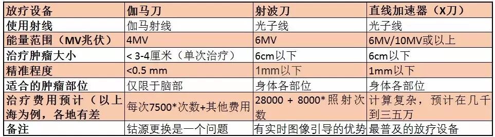 伽马刀和直线加速器,射波刀的对比如下: