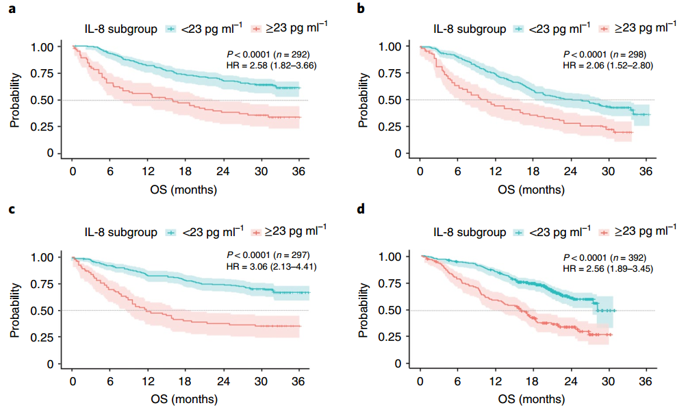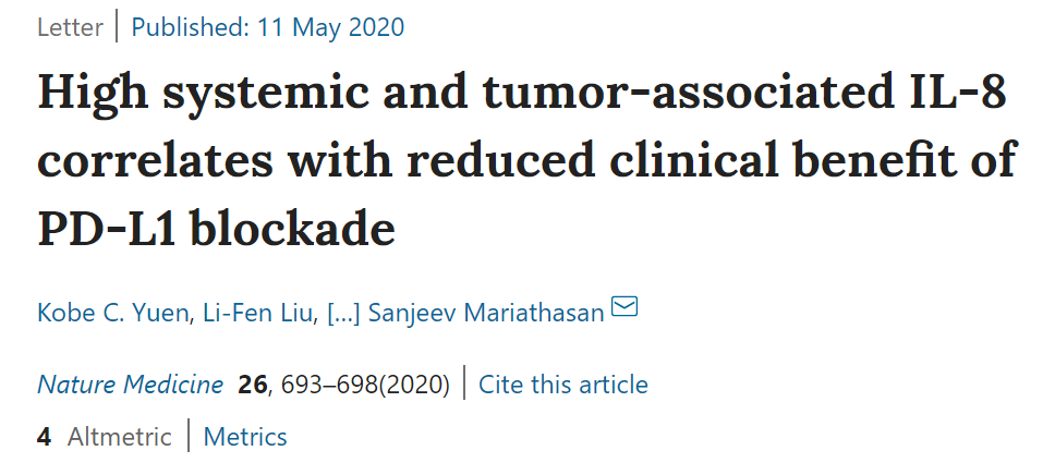 来自罗氏旗下基因泰克、荷兰癌症研究所等的研究人员在1445名接受了PD-L1单抗atezolizumab治疗的转移性尿路上皮癌(mUC)和转移性肾细胞(mRCC)癌患者中评估了血浆、外周血单核细胞和肿瘤内IL-8水平与临床结果之间的关联。这项研究分析是通过三项大型临床试验而进行,其中两项研究针对的是mUC患者,一项研究针对的是未经治疗的mRCC患者。