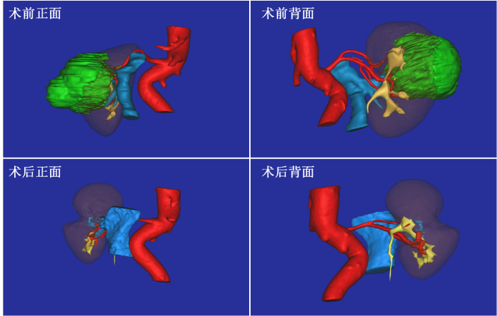 ▲左肾下部“巨大肾癌”,应用肾脏及血管三维重建技术行机器人辅助腹腔镜“半肾切除术”,术后存留肾功能良好。Pky帝国网站管理系统