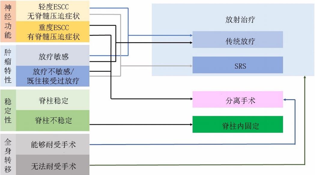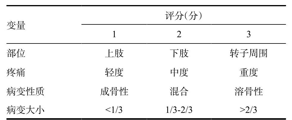 (2022版) 摘要 骨骼是乳腺癌最常见的远处转移部位,约占所有转移性乳腺癌患者的60%~75%。骨转移灶形成的软组织包块可对周围重要神经血管形成压迫,导致肢体局部功能丧失,骨痛、病理性骨折、脊髓压迫及高钙血症等骨相关事件的出现,严重影响患者的自主活动能力及生存质量。为早期识别乳腺癌骨转移、控制骨转移灶进展并对骨转移灶及时进行干预,从而改善患者的生存质量,中国抗癌协会骨肿瘤和骨转移瘤专业委员会组织编写《乳腺癌骨转移诊疗专家共识》,以期对乳腺癌骨转移患者的诊疗给予指导与帮助。 关键词: 乳腺癌;骨转移;专家共识; 近年来,我国肿瘤发病率以及死亡率呈逐年升高趋势,自2010年起,肿瘤已经成为首要死亡原因[1]。乳腺癌是影响女性健康的首要恶性肿瘤,据不完全统计,2018年全球确诊超过210万例,死亡约63万例[1,2]。在我国,其发病率和死亡率分列女性恶性肿瘤第1位及第5位,人口标化率分别为31.54/10万及6.67/10万,年均新发病例约26.86万例,因病死亡6.95万例[3]。骨骼是乳腺癌最常见的远处转移部位,约占所有转移性乳腺癌患者的60%~75%[2,4]。研究发现激素受体阳性型乳腺癌更易发生骨转移[2]。乳腺癌骨转移是乳腺癌发展的特殊阶段,治疗方案的选择存在一定困难。乳腺癌骨转移的诊疗提倡多学科共同协作(multiple disciplinary treatment,MDT),合理而有计划的为患者制定个体化的综合治疗方案,治疗目的是为了缓解症状,减缓肿瘤进展,改善患者生存质量,延长生存时间[2]。本专家共识基于循证医学证据,力求为乳腺癌骨转移的临床诊疗提供帮助与指导。 1 乳腺癌骨转移的临床表现 乳腺癌骨转移在临床上多表现为单发或多发的溶骨性病变,少数患者表现为溶骨成骨混合性病变。骨转移灶破坏骨的生理结构与机械强度,常伴有中重度骨痛,严重者可发展为病理性骨折。骨转移灶形成的软组织包块可对周围重要神经血管形成压迫,导致肢体局部功能丧失。骨痛、病理性骨折、脊髓压迫及高钙血症等骨相关事件(skeletal-related events,SREs)的出现,严重影响患者的自主活动能力及生存质量[4]。 2 乳腺癌骨转移评估与诊断方法 对疑似乳腺癌骨转移患者应进行充分的治疗前评估。包括病情评估、预期生存评估、影像学评估、病理学及生物化学标志物评估。对既往有乳腺癌病史且出现或可能出现骨相关事件的患者推荐进行下述检查: 2.1 影像学评估 1)骨放射性核素显像(emission computed tomography,ECT):为骨转移筛查的最常用方法。具有敏感性高、全身显像不易漏诊的优点[5]。但同时也存在特异性较低,不能显示骨破坏程度等问题,需与其他检查联合使用。故常推荐用于出现骨痛、病理性骨折、碱性磷酸酶升高或高钙血症等可疑骨转移的乳腺癌患者的筛查,以及诊断为乳腺癌骨转移患者的常规复查手段。检查结果方面,绝大部分乳腺癌骨转移病灶均表现为局部核素摄取增加。对于骨放射性核素显像提示异常的乳腺癌患者,应进一步针对可疑部位进行X线、CT或MRI检查,以明确病变性质。 2)X线:X线检查是诊断乳腺癌骨转移的最基本和最主要的方法,应与临床症状和ECT结合使用。通过对ECT识别的重点区域行X线检查,可以明确病变具体位置和与周围骨与关节的关系。X线检查特异性较高,但敏感性较低,难以发现早期转移灶[5]。乳腺癌骨转移在X线上常表现为溶骨性破坏,但也可见成骨性或混合性病变。通过X线检查可识别骨破坏性质,发现病理性骨折,以及评估病灶发生病理性骨折的风险等。 3)计算机断层扫描CT:CT较X线的敏感性和特异性均更高。对病变部位进行CT检查可以进一步明确病变和相邻组织关系,对判断皮质骨破坏范围及程度较有帮助,尤其适用于复杂解剖部位的转移灶。增强CT扫描可用于判断病变血供情况,并显示病变与周围神经、血管结构的关系,为外科治疗提供帮助。 4)磁共振成像MRI:MRI对诊断乳腺癌骨转移的敏感性更高,能更准确地显示病灶侵犯部位、范围及周围软组织侵犯情况,明确病变与周围软组织和重要神经血管关系,是评价乳腺癌骨转移骨髓内浸润的首选工具[5]。同时对于位于脊柱的转移性病灶,MRI在判断病变范围,脊髓及神经受累及情况具有突出优势。 5)正电子发射计算机断层扫描(positron emission tomography-computed tomography,PET-CT):PET-CT对于骨转移诊断的敏感性和特异性均高于骨放射性核素显像,可以反映肿瘤细胞的代谢水平,同机CT可以辅助精确定位且全身显像,是相对于骨放射性核素显像更有效的乳腺癌骨转移筛查工具。另一方面,目前PET-CT所常用的示踪剂18F-FDG易富集于溶骨性及骨髓浸润病变,适合乳腺癌骨转移的成像需求,是乳腺癌骨转移疗效评估和病情跟踪的良好手段。 2.2病理学评估 乳腺癌患者骨病灶的组织病理学检查是诊断乳腺癌骨转移的金标准。如果临床上可行,应积极对可疑骨病灶进行组织学检查以明确诊断,尤其是首次出现的可疑转移灶和单发骨病灶。如组织病理学确诊为乳腺癌骨转移,应同时对转移灶的分子分型进行判断。尤其在治疗反应不符合原发灶肿瘤分子分型特点,及原发病灶分子分型不明确的患者中更为重要。有研究发现,乳腺癌骨转移患者原发灶和转移灶中存在相当比例雌激素受体及Her-2表达不一致情况,为肿瘤系统性治疗带来困扰[6]。 乳腺癌可疑骨转移病灶的组织病理学检查应遵循肌肉骨骼系统肿瘤活检取材的原则,